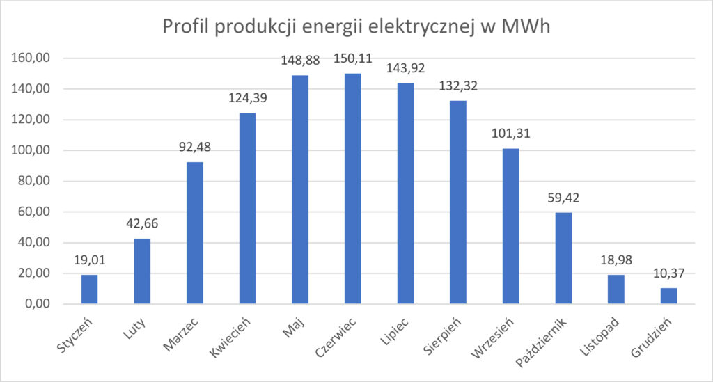 Przewidywana produktywność instalacji w poszczególnych latach [MWh]: